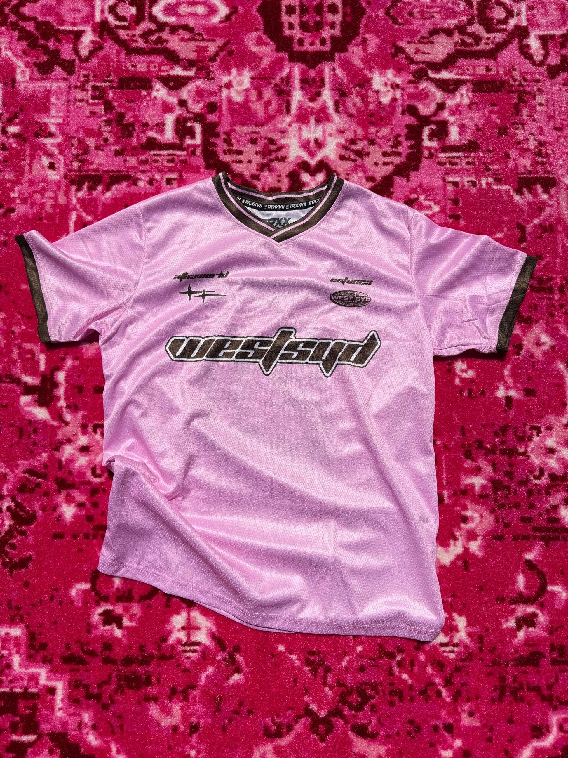 our ‘westsyd neapolitan’ soccer jersey in pink & brown. please note that our soccer jerseys are true to size, regular fit.